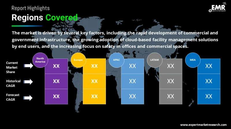 The surge in the development of commercial and government infrastructure, the increasing adoption of cloud-based facility management solutions by end users, and growing safety concerns across offices and commercial spaces are the major drivers of the market.