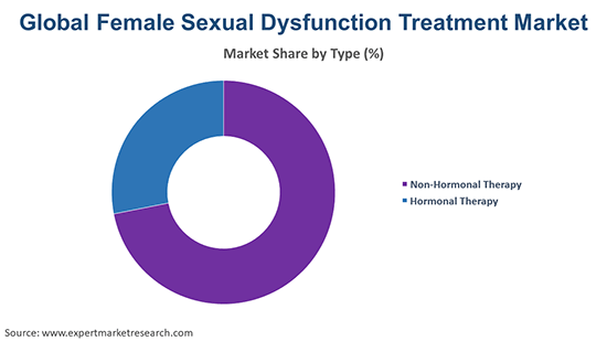 Based on indication, the market is divided into hypoactive sexual desire disorder (HSDD), arousal disorder, penetration (sexual pain) disorder, and female orgasmic disorder, among others.