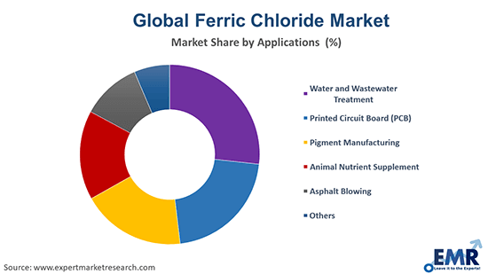 The leading application segments in the market are water and wastewater treatment, printed circuit board (PCB), pigment manufacturing, animal nutrient supplement, and asphalt blowing, among others.