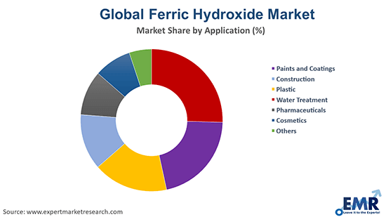 The significant applications of ferric hydroxide include paints and coatings, construction, plastic, water treatment, pharmaceuticals, and cosmetics, among others.