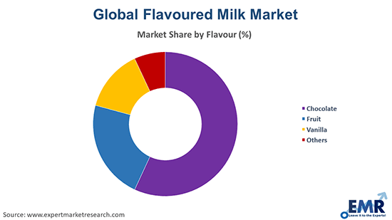 The leading flavours of flavoured milk in the market are chocolate, fruits, and vanilla, among others.