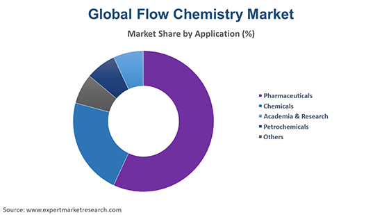The significant applications of flow chemistry are pharmaceuticals, chemicals, academia and research, and petrochemicals, among others.