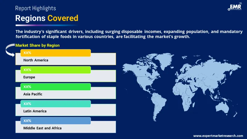 Increasing investments in nutrition equity and international collaboration are key market growth enablers. For instance, in October 2024, ADM Cares renewed its partnership with the Food Fortification Initiative (FFI), supporting fortification programs across 26 countries and impacting 1 billion people. The initiative targets hidden hunger among women and children through staple food enrichment. This continued commitment to large-scale fortification programs is expected to expand the market footprint, especially in regions with critical nutrient gaps and vulnerable populations.