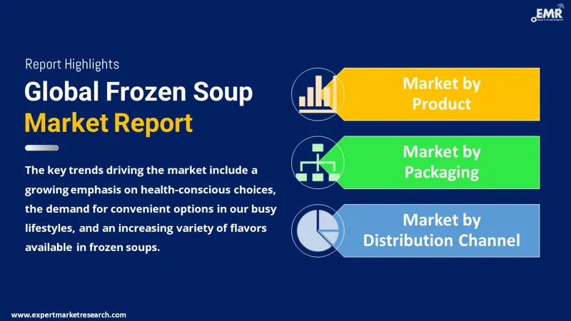 Key trends aiding market expansion include the rising focus on health, busy lifestyle, and increasing availability of a variety of flavours of frozen soups.