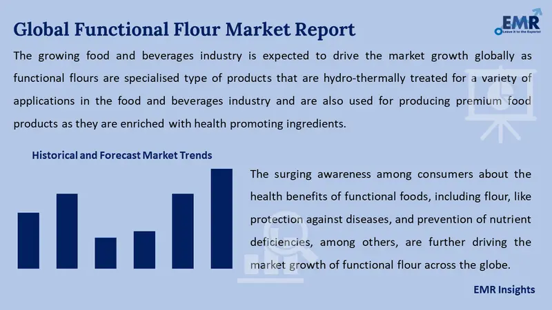 The market encompasses flours enhanced through physical, enzymatic, or thermal processes, such as gluten-free and pre-gelatinized varieties, that deliver nutritional benefits beyond basic provisions. According to the WHO, in 2022 , approximately 390 million adults were underweight globally, while 2.5 billion were overweight or obese, highlighting the dual need for both nutrient-rich and health-focused food solutions. Functional flour addresses malnutrition by improving protein, fiber, and micronutrient intake for vulnerable populations, while aiding gut health and specialized diet needs. These qualities position functional flour as essential in global nutrition and public health strategies. The market is anticipated to grow at a CAGR of 7.56% during the forecast period of 2026-2035.