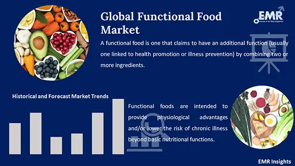 The market is expanding due to the rising consumer demand for nutritious and fortified food products. Functional ingredients like omega-3 and probiotics are widely utilised in fish oils and yoghurt to lower the risk of cardiovascular diseases and enhance the quality of intestinal microflora. This is driving the growth of the market. Furthermore, as people become more health-conscious and pay more attention to their lifestyles and diets, the demand for functional foods is expected to increase throughout the world. With the growing popularity of low-carbohydrate and high-protein diets such as paleo diets and the increasing awareness of digestive health, the market is anticipated to witness significant growth in the forecast period.