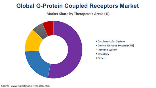 The significant therapeutic areas of G-protein coupled receptors include cardiovascular system, central nervous system (CNS), immune system, and oncology, among others.