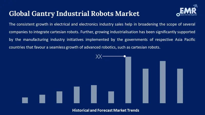 The gantry industrial robot market is also expected to grow due to the increased acceptability of gantry and cartesian systems due to their improved programming and communication interfaces. Along with this, growing urbanisation and an increase in the deployment of cartesian systems that can be designed for collaborative applications are both expected to augment the market growth.