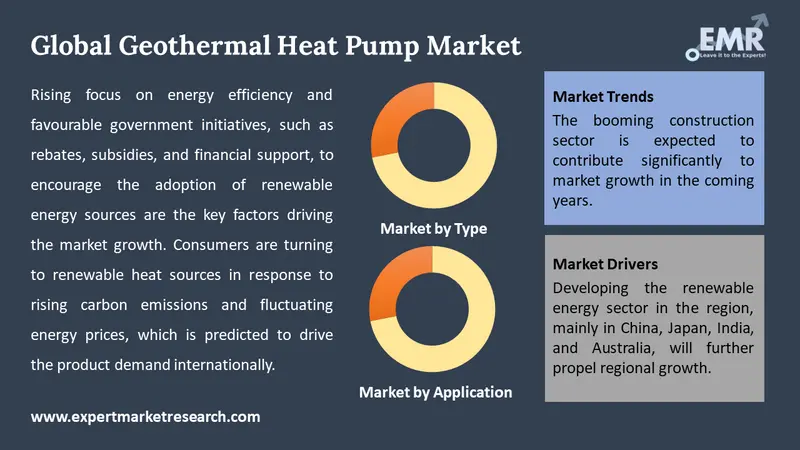 The major drivers of the market include the improving construction sector, rise in expenditure towards ecological construction, surging demand for heating and cooling systems, rapid industrialisation and commercialisation, increased consumer awareness of clean energy, rising oil and electricity prices, and rising use of ground-source heat pumps in residential settings.