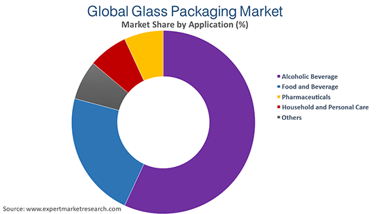 Alcoholic beverage, food and beverage, pharmaceuticals, and household and personal care, among others, are the major applications of glass packaging in the market.