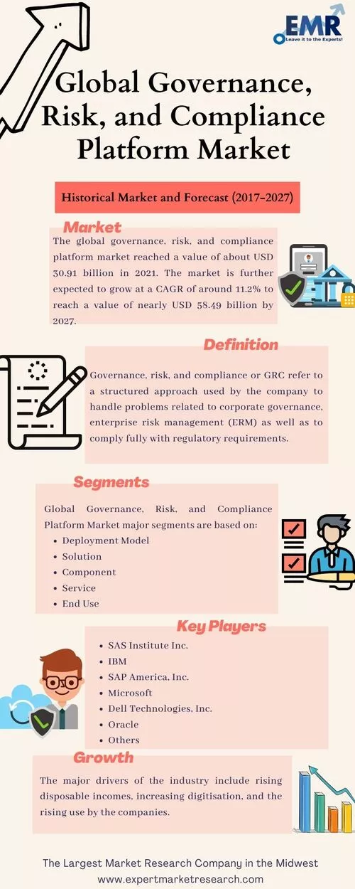 The global governance, risk, and compliance platform market growth is driven by increasing focus on risk mitigation, rising cyber threats, evolution in regulations, and boosting new organisations.