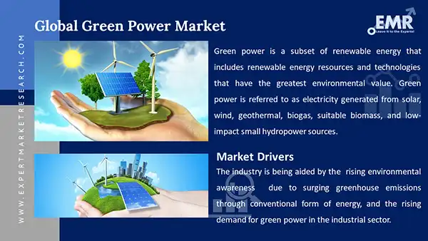 The market is being driven by the rising environmental awareness due to surging greenhouse emissions through conventional forms of energy and the rising demand for green power in the industrial sector.