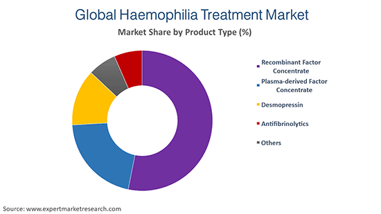 The product types include recombinant coagulation factor concentrate, plasma derived coagulation factor, concentrate, desmopressin, and antifibrinolytics agents.