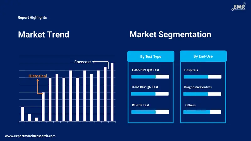 The key hepatitis E diagnostic tests market trends include shift towards molecular diagnostics from conventional testing methods, growing awareness about the advantages of regularly testing for hepatitis E virus, and increasing technological advancements.
