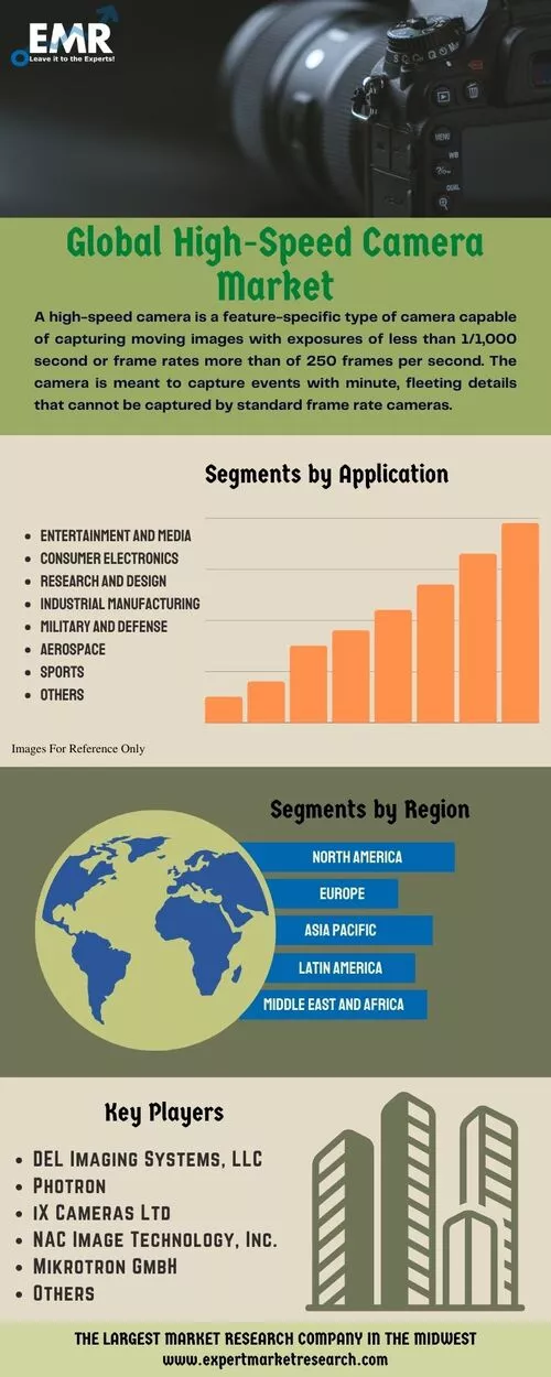The high-speed camera market is growing rapidly on account of increasing demand across a wide range of industries. These include automotive, health care, aerospace, and media. High-speed cameras catch fast-moving objects with superb clarity, allowing for fine analysis in applications such as production-line monitoring, and medical diagnostics, thereby bolstering the high-speed camera demand.