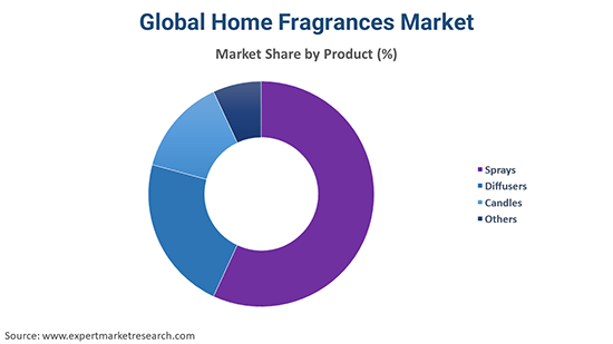 Sprays, diffusers, and candles, among others, are the major products in the global home fragrances market.