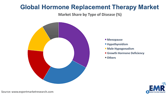 The significant types of diseases in the industry are menopause, hypothyroidism, male hypogonadism, and growth hormone deficiency, among others.