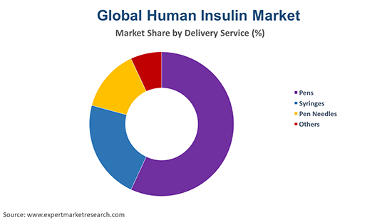 The market for human insulin is driven by the rising cases of diabetes and obesity across the globe, which are the resultants of changing lifestyles and unhealthy consumption of sugar in various food and beverages. In addition, the rising investments in research and development activities by several organisations have led to an advanced and easier way of injecting insulin, which is also boosting the market growth of human insulin. Moreover, the introduction of the safety pen devices and pen needles for effective delivery of insulin is propelling the global market forward. Further, growing awareness of diabetes is expected to bolster the demand in the human insulin industry.