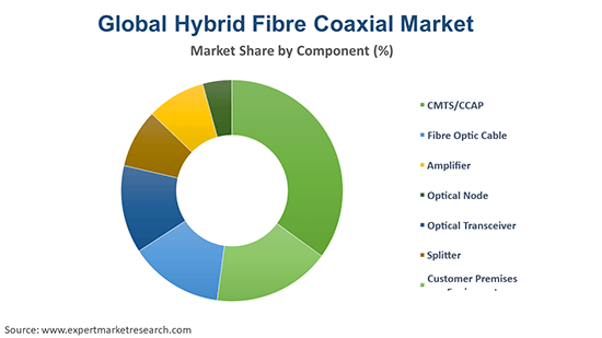 The leading components in the market are CMTS/CCAP, fibre optic cable, amplifier, optical node, optical transceiver, splitter, and customer premises equipment.