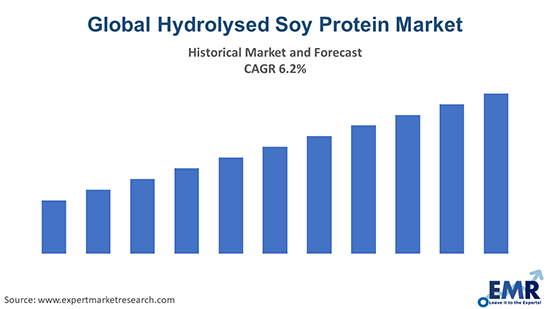 The global hydrolysed soy protein market is expected to grow at a CAGR of 6.20% in the forecast period of 2026-2035.