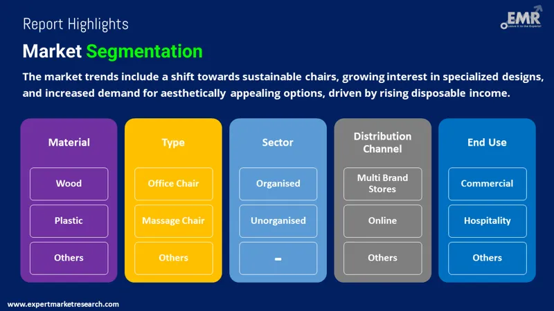 The key trends of the market are increasing preference for sustainable chairs, interest in specialised chairs, growing disposable income, and rising demand for aesthetically appealing chairs.