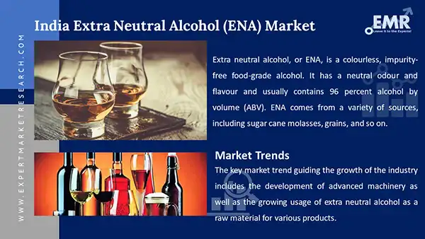 The major Indian markets for extra neutral alcohol (ENA) include Punjab, Maharashtra, Madhya Pradesh, Uttar Pradesh, Karnataka, Andhra Pradesh and Telangana, Tamil Nadu, Haryana, and West Bengal, among others.