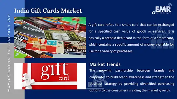 The key industry trends include the rising demand for convenient gifting options in the corporate sector and rising applications of gift cards in the food and beverages, health, wellness and beauty, apparel, and footwear and accessories.