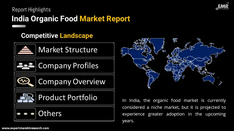 Key players in the market are Suminter India Organics Private Limited, ORGANIC INDIA Pvt. Ltd., Sresta Natural Bioproducts Pvt. Ltd, LT Foods Ltd. (Nature Bio-Foods Limited), Nourish Organic Foods Pvt. Ltd., Rattan Organic Foods Pvt. Ltd., Phalada Organic Consumer Products Pvt. Ltd., Mehrotra Consumer Products Pvt. Ltd. (Organic Tattva), EcoFarms (India) Ltd., and Conscious Food Private Limited, among others.