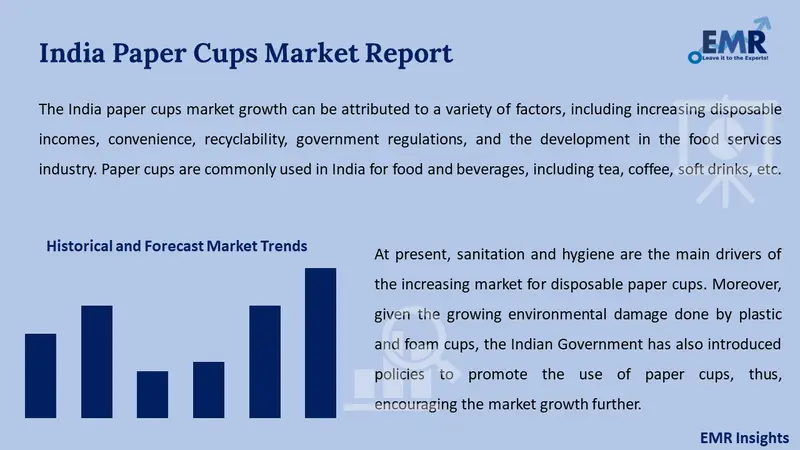 The shift in customer preference towards eco-friendly products, the rise of takeaways and online food delivery services, and favourable government initiatives promoting paper cups are some key trends boosting market growth.