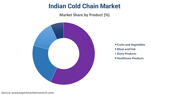 In the India cold chain logistics market analysis, the fruits and vegetables segment see a high demand for efficient cold chain storage and transportation solutions due to India's significant production of perishable produce. The meat and fish segment showcases an increasing need for cold chain services to maintain the safety and quality of these perishable products. Dairy products represent another crucial segment in the market, requiring cold chain infrastructure to preserve the quality and freshness of dairy items such as milk, cheese, and ice cream. In the healthcare products segment, particularly pharmaceuticals and biopharmaceuticals, there is a rapidly growing demand for precise temperature control during storage and transportation to maintain product efficacy and safety.