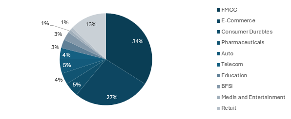 FMCG players contribute to the India digital marketing market value by a high margin, propelled by high turnover, frequent launches, and regional targeting needs. Together with e-commerce, FMCG accounted for 67% of digital ad spend in FY 2024–25. From tea to toiletries, these brands deploy multi-format campaigns with video, influencer, regional content. Their pace of innovation, especially around vernacular messaging and live commerce, sets a benchmark for other sectors striving to engage mass, diverse audiences.