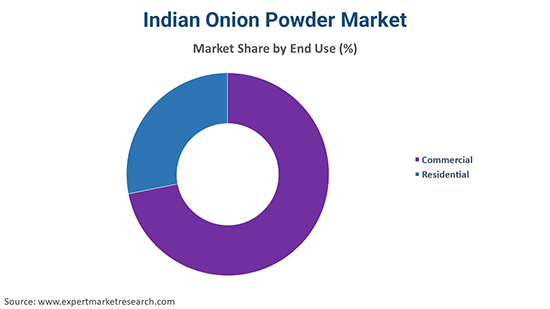 The leading end uses in the onion powder market in India are commercial and residential.