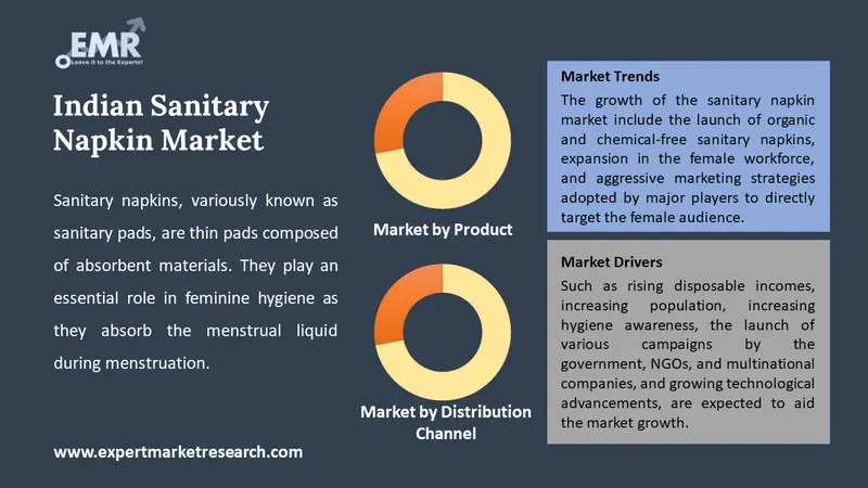 The market is witnessing strong growth driven by increasing menstrual hygiene awareness, government schemes promoting sanitary products, rising female literacy, and expanding retail and e-commerce penetration, projected to boost demand.