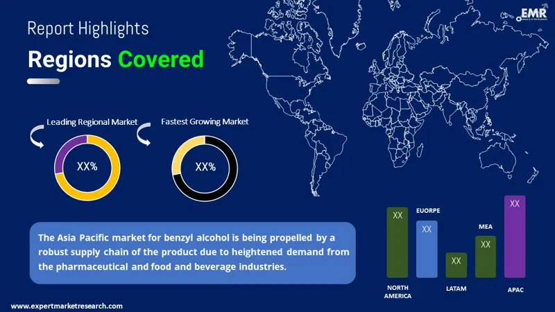 The market in the Asia Pacific region is being driven by the strong supply chain of the product owing to the heightened demand from the pharmaceutical and food and beverage industries. The large population base in the emerging economies such as India and China is likely to generate a high demand for the downstream cosmetic products of benzyl alcohol. This factor is further contributing to the market growth.