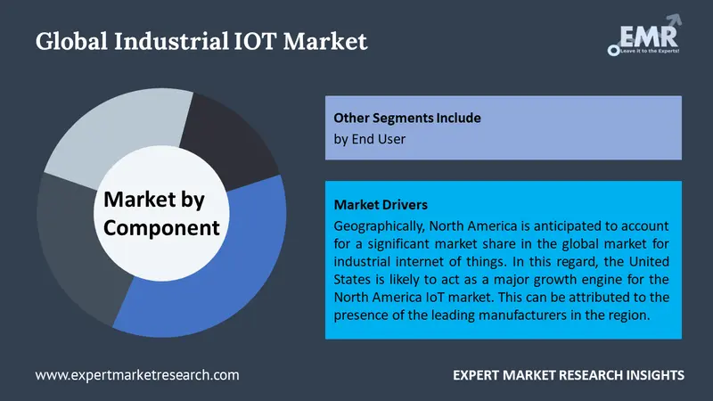 The increased demand for IoT in the healthcare sector is expected to increase the IIoT market size. IoT in healthcare industry enables reduced medical errors, as it reduces manual data entry which allows for efficient patient monitoring and treatment. In addition, IIoT solutions also help to reduce medical device downtime. Furthermore, IoT enables healthcare professionals to connect with the patients remotely, which helps to expand the accessibility of healthcare services. As per the Industrial IoT market forecast, IoT devices can be worn on-the-go as wearables by the patients to track the health and medical conditions, such as heart monitors, glucose monitors, and others. These allow for real time data sharing and analysis to reduce the frequency of preventable deaths. These factors are expected to aid the market growth in the coming years.
