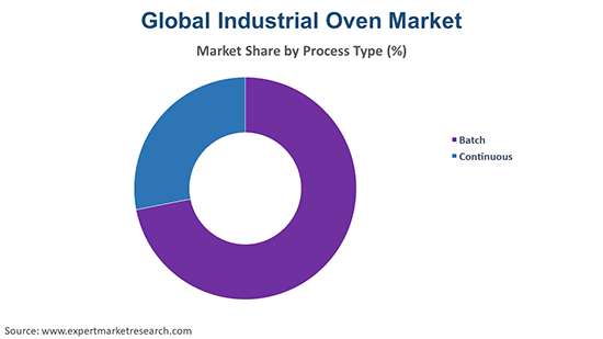 Based on process type, the continuous segment dominates the global market for industrial oven and is expected to further maintain its dominance in the forecast period. The growth of the segment can be attributed to the growing demand for continuous style ovens owing to their ability to operate at a continuous rate and facilitate high-volume production at an economical rate. The major benefit offered by the continuous process as compared to the batch process is consistency in operation. These ovens reduce the dependence on workforce and simplifies the manufacturing process, providing maximum output at an affordable cost, which is aiding the industry growth.