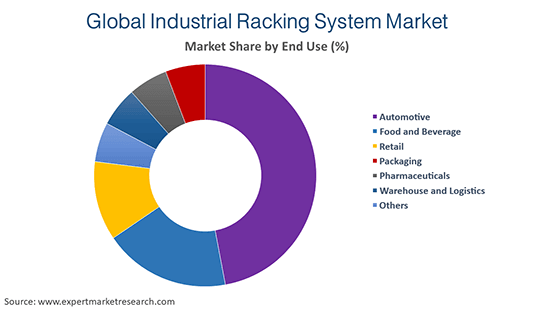 Industrial racking systems have various end uses like automotive, food and beverage, retail, packaging, pharmaceuticals, and warehouse and logistics, among others.