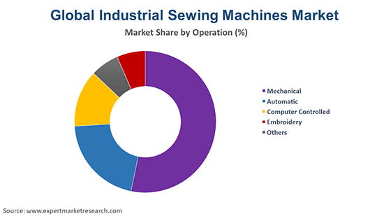 Computer-controlled sewing machines provide functions, such as automatic cutting, dialing, and counting. Further, advanced computer-controlled sewing machines have a high degree of automation and can lower the burden on workers. According to the industrial sewing machines market report, high-performance industrial embroidery machines aid in the production of high-quality, versatile, unique embroidery designs using less time and effort.