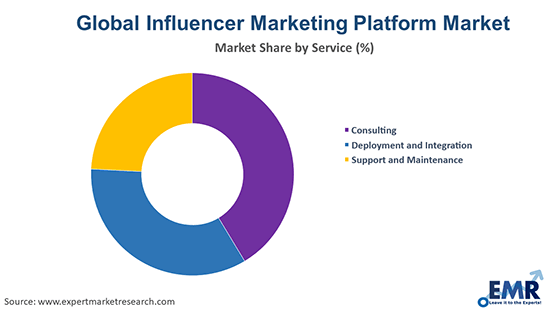 The influencer marketing platform market is categorised into consulting, deployment and integration, and support and maintenance.