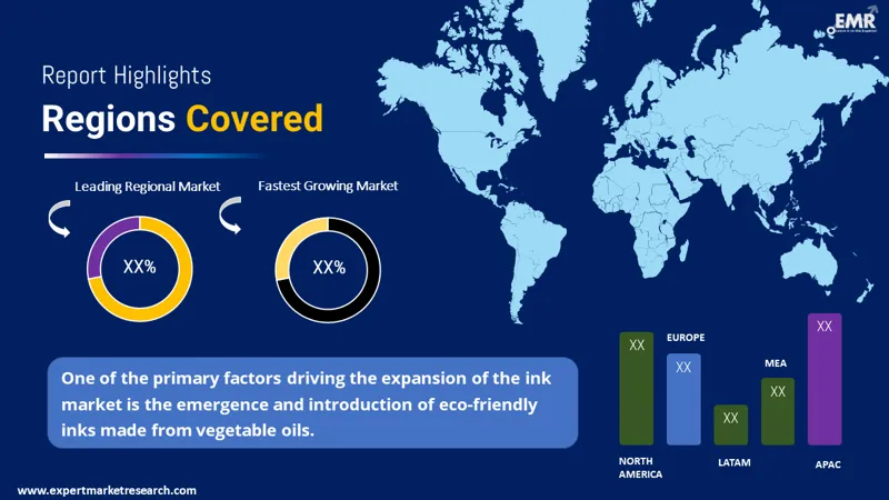 The expansion of the packaging sector, the rising adoption of environmentally friendly inks, the robust growth of the e-commerce sector, the surging demand for security and UV-curable inks, technological advancements and innovations, and the rising preference for water-based inks.