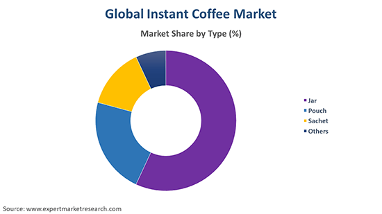 The global instant coffee market has been categorised based on packaging into jars, pouches, sachets, and others. Of these, pouches account for the largest share of the market.