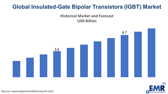 The global insulated-gate bipolar transistors (IGBT) market attained USD 7.89 Billion in 2025. The global IGBT market is expected to grow at a CAGR of 8.00% in the forecast period of 2026-2035 to attain USD 17.03 Billion by 2035.