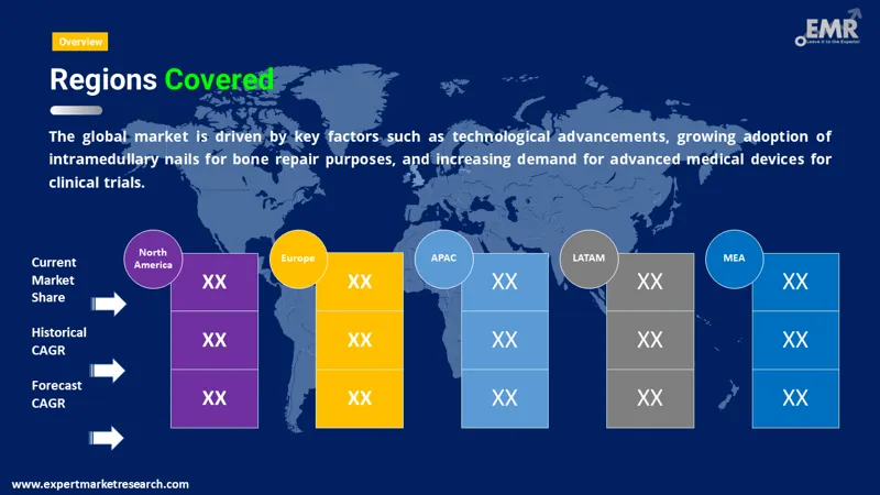 Based on the region, the market report covers North America, Europe, Asia Pacific, Latin America, and the Middle East and Africa. North America is dominating the market share as the region boasts advanced healthcare infrastructure with well-established orthopedic surgery facilities. The region's robust healthcare system facilitates timely access to orthopedic care, contributing to the high demand for intramedullary nails, and thus driving the region’s demand.
