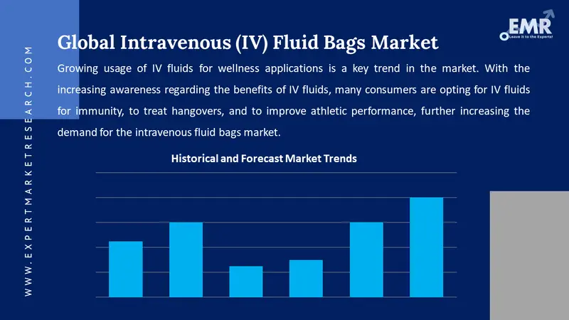 The key trends in the market include the growing innovations leading to the development of more convenient options such as disposable IV fluid bags and increasing popularity of intravenous vitamin therapy.