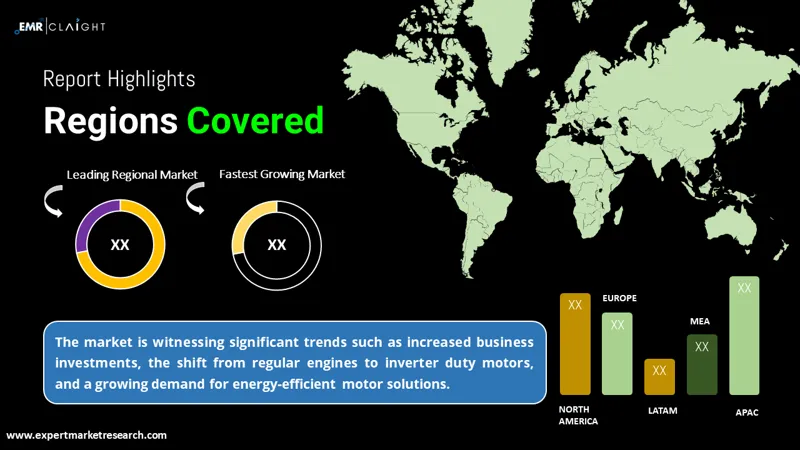 The major regions in the inverter duty motors market are North America, Latin America, the Middle East and Africa, Europe, and the Asia Pacific.
