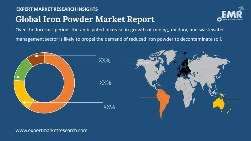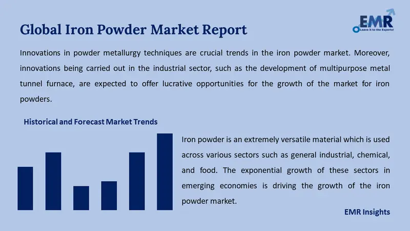 The thriving automotive, chemical, and food sector, increasing popularity of sustainable fossil fuel alternatives, and growing applications of iron powder in heating components are the major drivers of the market.