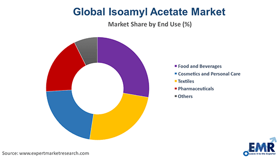 The major end uses of isoamyl acetate are food and beverages, cosmetics and personal care, textiles, and pharmaceuticals, among others.