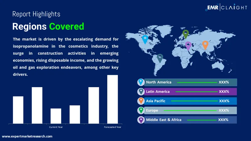Rising demand for isopropanolamine from the cosmetics sector, increasing construction activities across emerging economies, inflating disposable income, and growing oil and gas exploration activities, are the major drivers of the market.