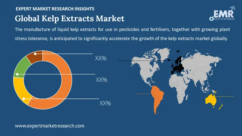 Kelp extracts are components taken from a form of seaweed known as kelp which is rich in many healthy nutrients. The plant species Laminaria produces the brown algae that is used to make kelp extracts. The most essential component of kelp is its abundance of growth hormones, including cytokinins, auxins, and gibberellins, which promote cell division and the development of larger root systems. Kelp also includes significant amounts of trace minerals, micronutrients, amino acids, and vitamins. Such factors are aiding to bolster the global kelp extracts demand.