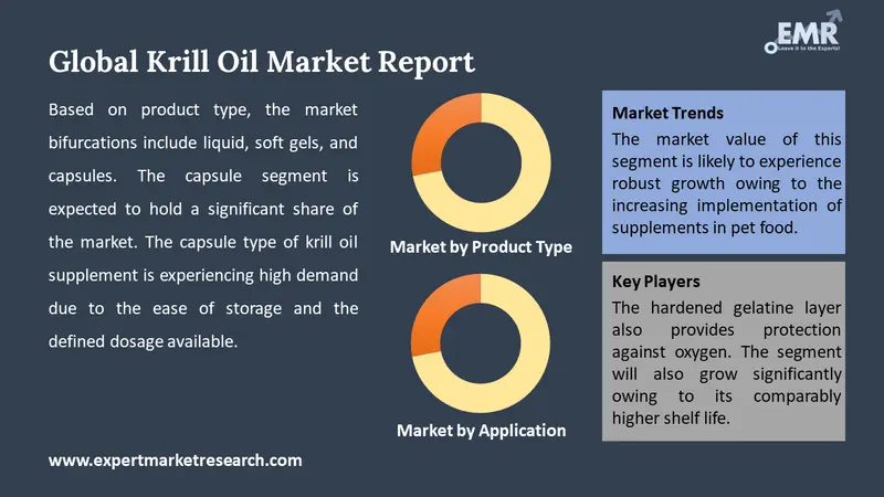 The krill oil market players are focussing on sustainability and product innovation while trying to expand their market presence. Krill oil companies have streamlined their operations to enhance the bioavailability of krill oil, which in turn increases the absorption rates among consumers. Krill fishing companies have also embraced sustainability, adhering to environmental regulations and catering to growing consumer demand for natural, health-improving supplements, especially heart, brain, and joint health.